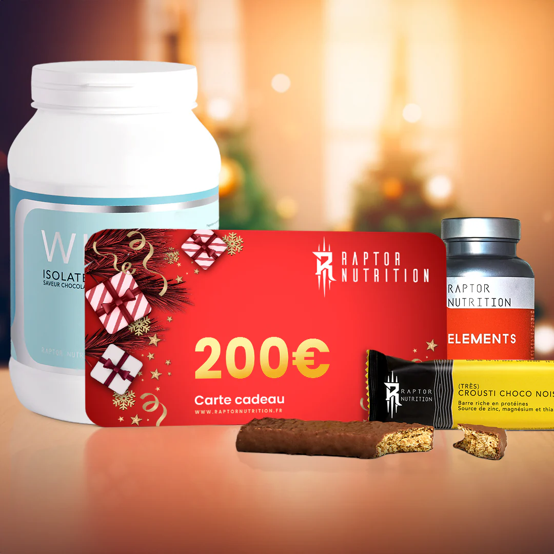 Offrez à un proche un bon d'achat de 50€, 100€ ou 200€ valable sur tout le site Raptor Nutrition en une ou plusieurs fois.